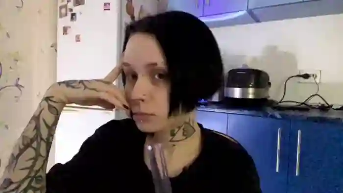 Her birthday is August 6th 2006 making her 19 years old, and the average age of models on Flirt4Free is 25—making her one of the younger models. Her height is 163cm, and her weight is 53kg. She identifies her ethnicity as caucasian. She has a shaved pubic hair, and b cup breasts on a slim body with grey eyes and average black hair.Her body art includes piercings, tattoo(s).