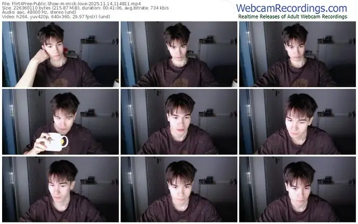 There are a total of 2,142 recordings (1,325 hours) of mick-love from Flirt4Free available below.