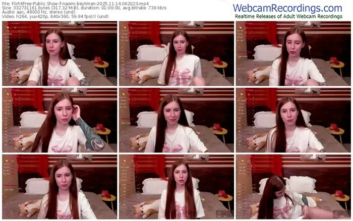 There are a total of 255 recordings (165 hours) of naomi-beytman from Flirt4Free available below.