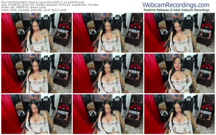 There are a total of 260 recordings (76 hours) of zayra-ross from Flirt4Free available below.