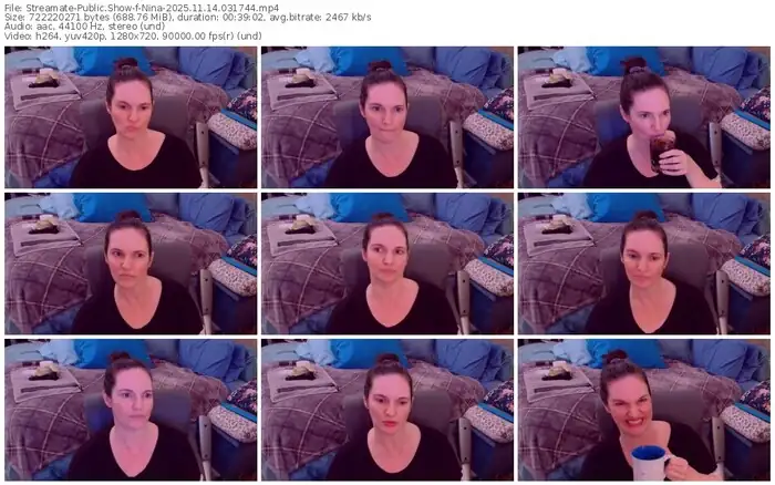 There are a total of 124 recordings (52 hours) of Nina from Streamate available below.