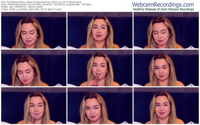 There are a total of 2,854 recordings (1,153 hours) of lola-swanson from Flirt4Free available below.