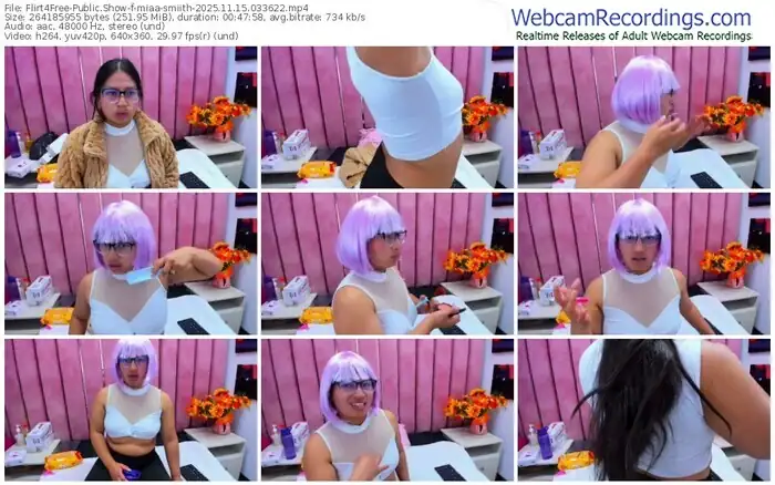 There are a total of 641 recordings (325 hours) of miaa-smiith from Flirt4Free and CamSoda available below.