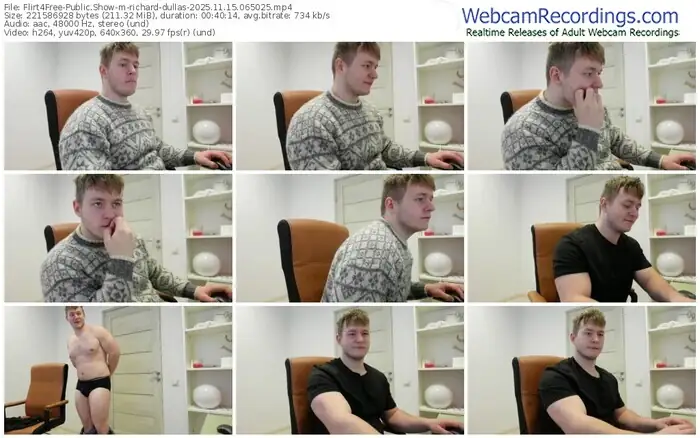 There are a total of 639 recordings (344 hours) of richard-dullas from Flirt4Free available below.