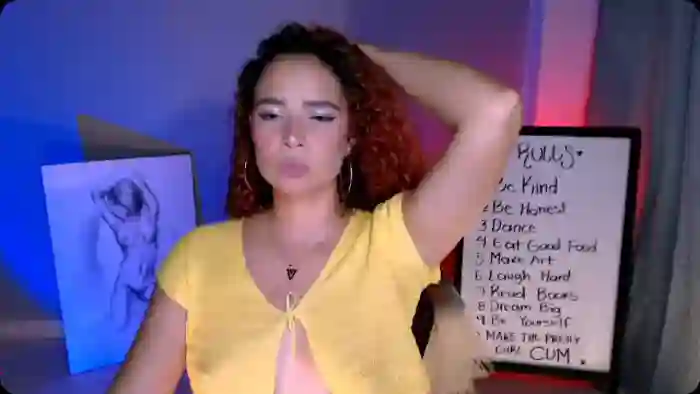 Her birthday is June 13th 1996 making her 29 years old, and the average age of models on Flirt4Free is 25—making her one of the older models. Her height is 165cm, and her weight is 62kg. She identifies her ethnicity as hispanic. She has a hairy pubic hair, and c cup breasts on a average body with brown eyes and long red hair.Her body art includes tattoo(s).