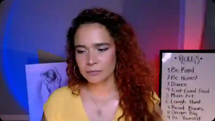 Her birthday is June 13th 1996 making her 29 years old, and the average age of models on Flirt4Free is 25—making her one of the older models. Her height is 165cm, and her weight is 62kg. She identifies her ethnicity as hispanic. She has a hairy pubic hair, and c cup breasts on a average body with brown eyes and long red hair.Her body art includes tattoo(s).