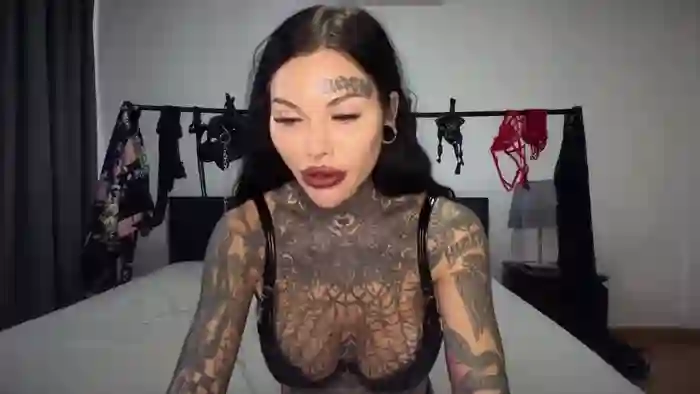 She is 24 years old, and the average age of models on Streamate is 30—making her one of the younger models. Her height is 5'5, and her weight is 125 lbs. She identifies her ethnicity as white. She has a ddd/f cup size breasts, bald pubic hair on a slender body with green eyes and black hair.Her body art includes tattoos, piercings.