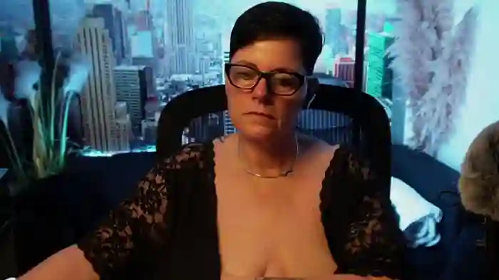 She is 54 years old, and the average age of models on Streamate is 30—making her one of the older models. Her height is 5'7, and her weight is 209 lbs. She identifies her ethnicity as white. She has a d cup size breasts, hairy pubic hair on a bbw body with blue eyes and black hair.Her body art includes tattoos.