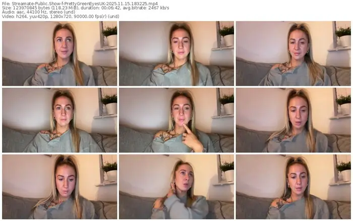 There are a total of 1,387 recordings (378 hours) of PrettyGreenEyesUK from Streamate available below.