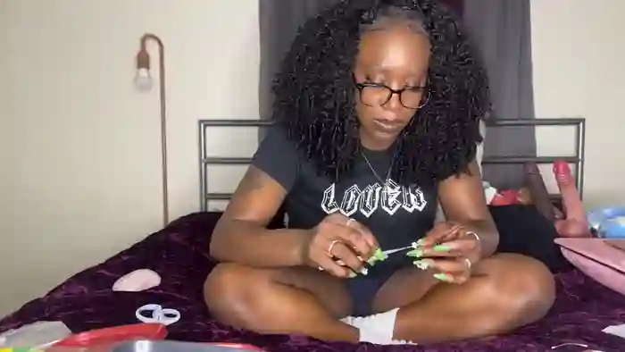 She is 35 years old, and the average age of models on Streamate is 30—making her one of the older models. Her height is 5'2, and her weight is 155 lbs. She identifies her ethnicity as black. She has a dd/e cup size breasts, bald pubic hair on an athletic body with brown eyes and black hair.Her body art includes tattoos, piercings.