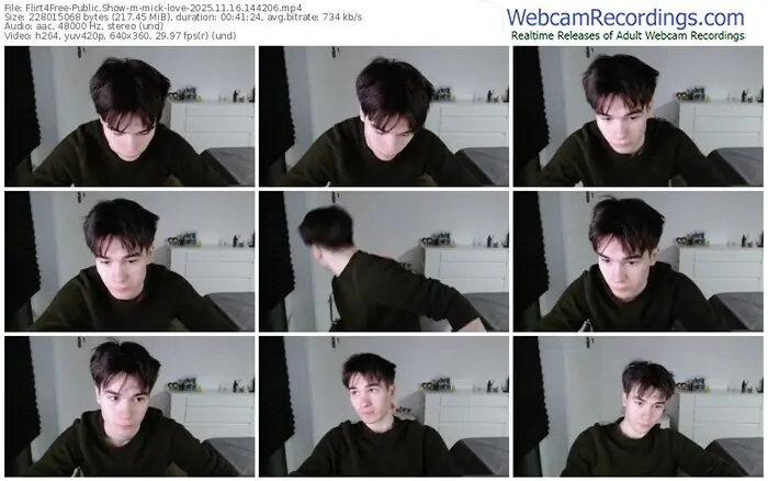 There are a total of 2,142 recordings (1,325 hours) of mick-love from Flirt4Free available below.