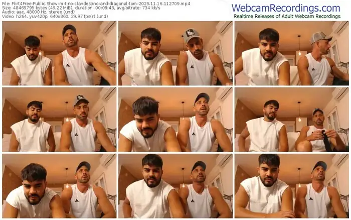 There are a total of 57 recordings (36 hours) of tino-clandestino-and-diagonal-tom from Flirt4Free available below.
