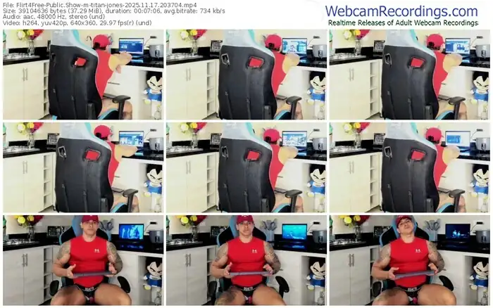 There are a total of 732 recordings (493 hours) of titan-jones from Flirt4Free available below.