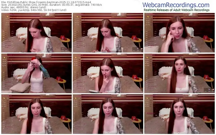There are a total of 255 recordings (165 hours) of naomi-beytman from Flirt4Free available below.