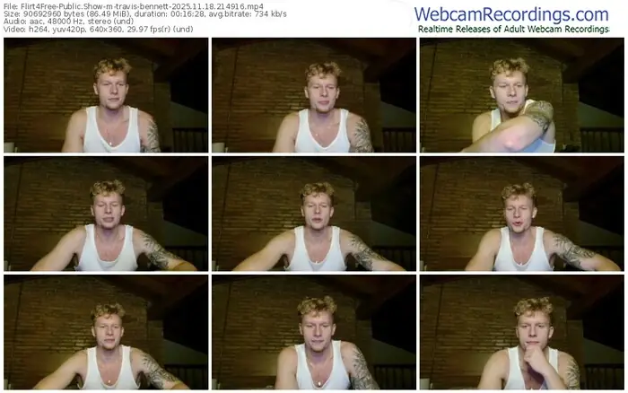 There are a total of 41 recordings (19 hours) of travis-bennett from Flirt4Free available below.
