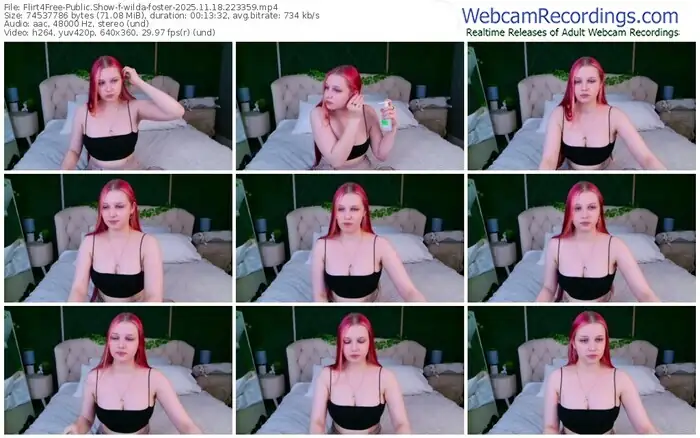 There are a total of 641 recordings (294 hours) of wilda-foster from Flirt4Free available below.