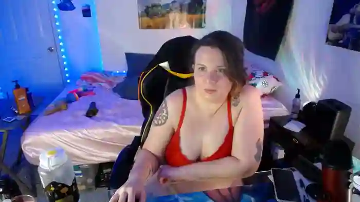 She is 26 years old, and the average age of models on Streamate is 30—making her one of the younger models. Her height is 5'5, and her weight is 230 lbs. She identifies her ethnicity as white. She has a d cup size breasts, hairy pubic hair on a bbw body with blue eyes and brown hair.Her body art includes tattoos.