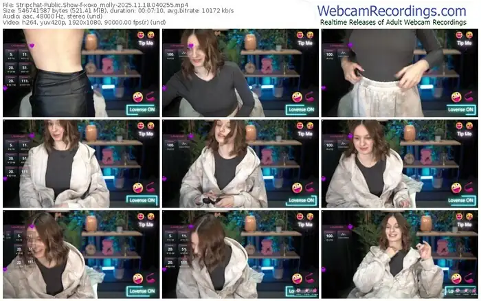 There are a total of 13 recordings (4 hours) of xoxo_molly from Stripchat and MFC available below.