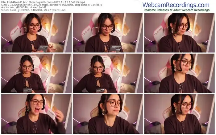 There are a total of 196 recordings (112 hours) of gisell-jones from Flirt4Free available below.