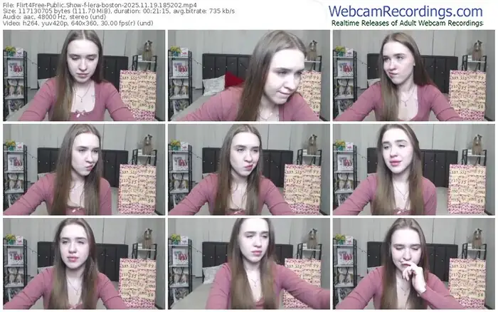 There are a total of 565 recordings (290 hours) of lera-boston from Flirt4Free available below.