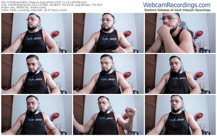 There are a total of 3,370 recordings (3,037 hours) of luigi-white from Flirt4Free available below.