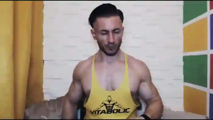 His birthday is May 11th 1993 making him 32 years old, and the average age of models on Flirt4Free is 25—making him one of the older models. His height is 176cm, and his weight is 87kg. He identifies his ethnicity as caucasian. He has a shaved pubic hair, muscular body with black eyes and short black hair.