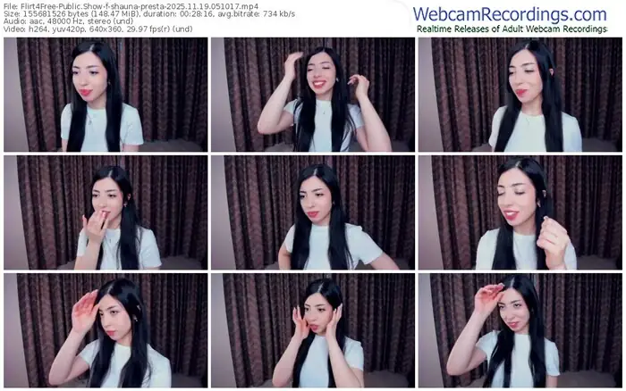 There are a total of 240 recordings (157 hours) of shauna-presta from Flirt4Free available below.