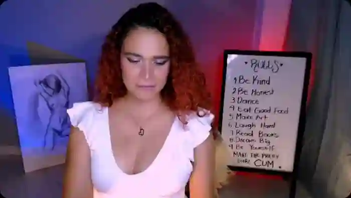 Her birthday is June 13th 1996 making her 29 years old, and the average age of models on Flirt4Free is 25—making her one of the older models. Her height is 165cm, and her weight is 62kg. She identifies her ethnicity as hispanic. She has a hairy pubic hair, and c cup breasts on a average body with brown eyes and long red hair.Her body art includes tattoo(s).