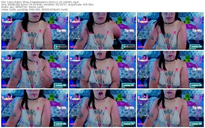 There are a total of 407 recordings (137 hours) of NatalieHarris from Cams and Stripchat available below.