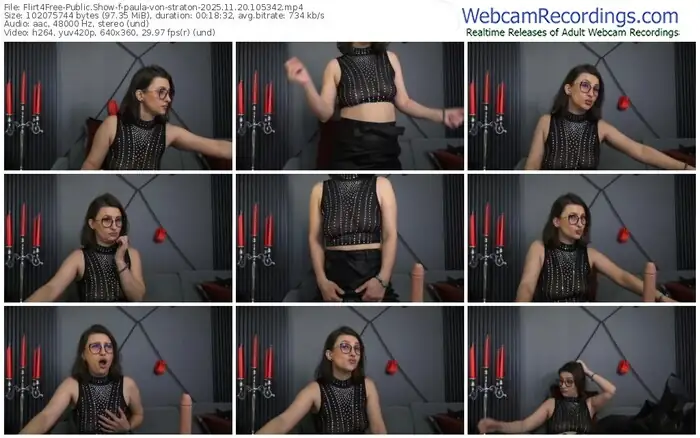 There are a total of 869 recordings (517 hours) of paula-von-straton from Flirt4Free available below.