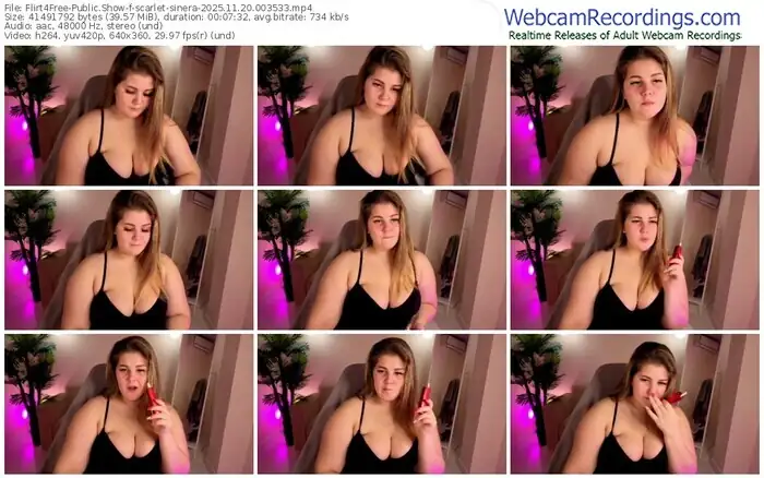 There are a total of 250 recordings (117 hours) of scarlet-sinera from Flirt4Free available below.