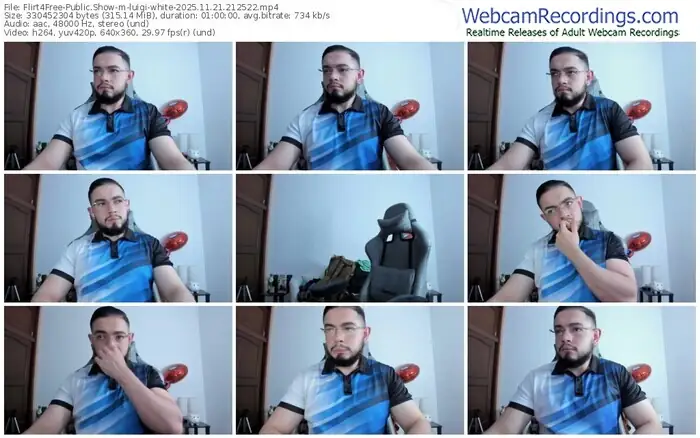 There are a total of 3,370 recordings (3,037 hours) of luigi-white from Flirt4Free available below.