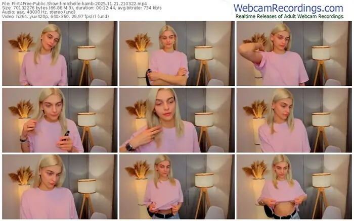 There are a total of 122 recordings (75 hours) of michelle-kamb from Flirt4Free available below.
