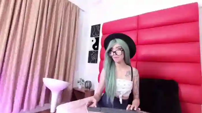 Her birthday is September 27th 2003 making her 22 years old, and the average age of models on Flirt4Free is 25—making her one of the younger models. Her height is 174cm, and her weight is 62kg. She identifies her ethnicity as hispanic. She has a shaved pubic hair, and b cup breasts on a slim body with green eyes and long multi color hair.Her body art includes piercings, tattoo(s).