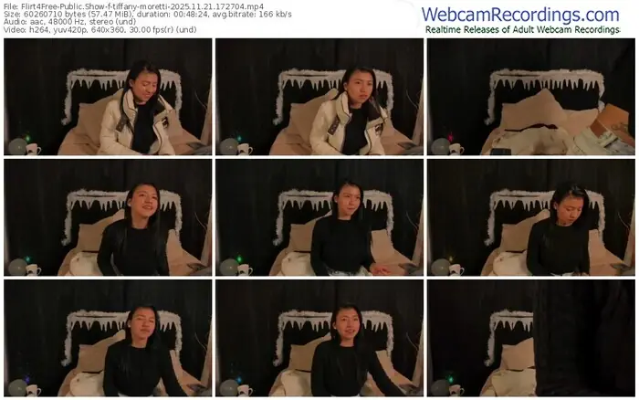 There are a total of 394 recordings (233 hours) of tiffany-moretti from Flirt4Free available below.