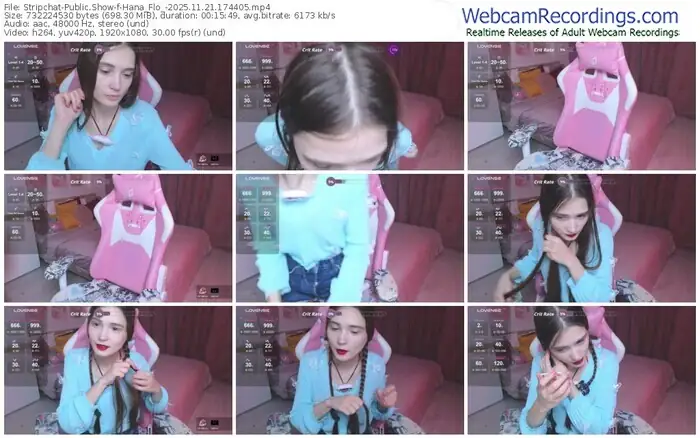 There are a total of 22 recordings (6 hours) of Hana_Flo_ from Stripchat available below.