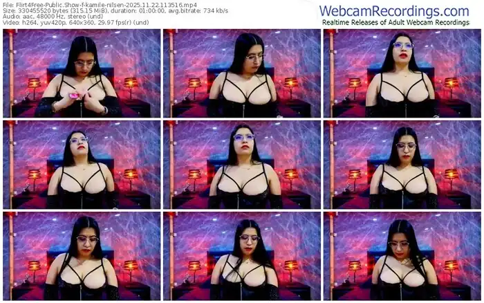 There are a total of 1,476 recordings (983 hours) of kamile-nilsen from Flirt4Free available below.