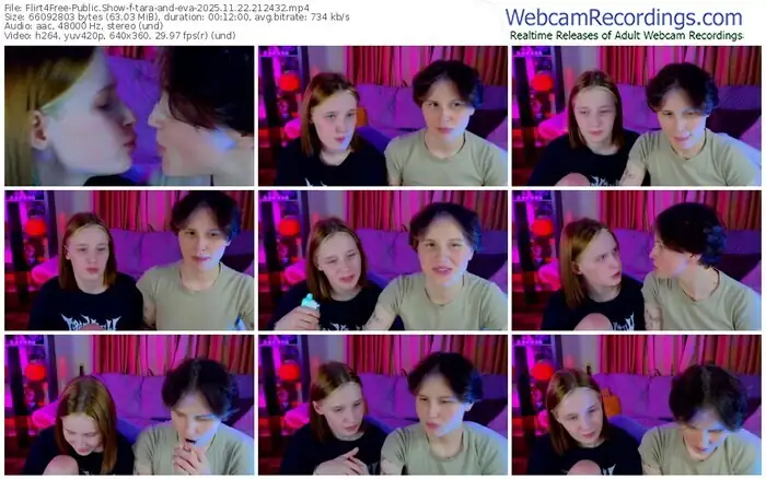 There are a total of 84 recordings (54 hours) of tara-and-eva from Flirt4Free available below.