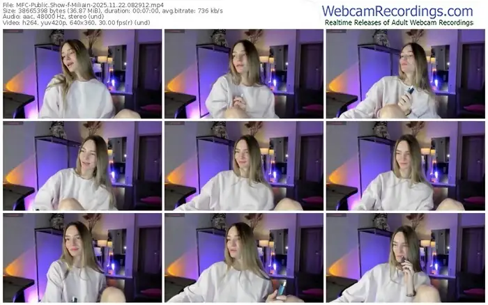 There are a total of 592 recordings (297 hours) of Miliain from MyFreeCams available below.