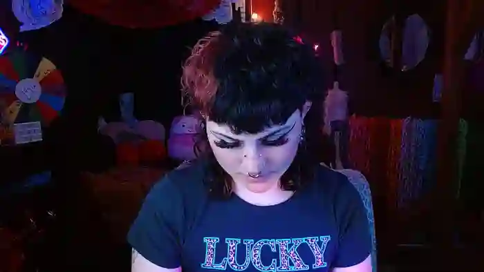 She is 23 years old, and the average age of models on Streamate is 30—making her one of the younger models. Her height is 5'8, and her weight is 155 lbs. She identifies her ethnicity as white. She has a c cup size breasts, hairy pubic hair on a curvaceous body with hazel eyes and dyed hair.Her body art includes tattoos, piercings.