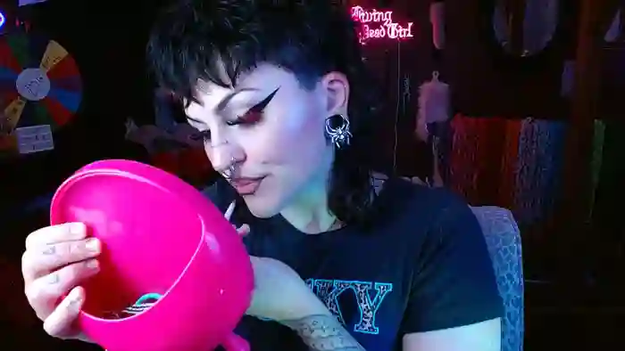 She is 23 years old, and the average age of models on Streamate is 30—making her one of the younger models. Her height is 5'8, and her weight is 155 lbs. She identifies her ethnicity as white. She has a c cup size breasts, hairy pubic hair on a curvaceous body with hazel eyes and dyed hair.Her body art includes tattoos, piercings.