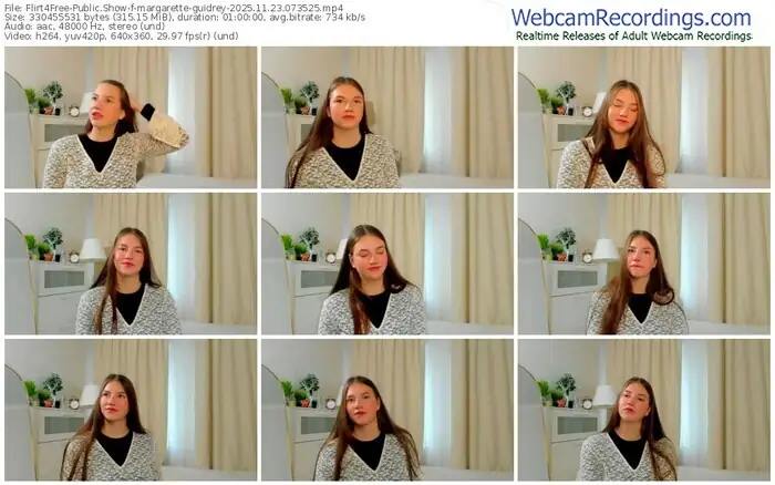 There are a total of 11 recordings (11 hours) of margarette-guidrey from Flirt4Free available below.
