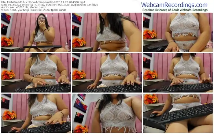 There are a total of 641 recordings (325 hours) of miaa-smiith from Flirt4Free and CamSoda available below.