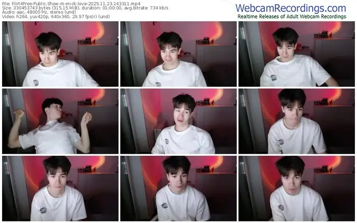 There are a total of 2,143 recordings (1,326 hours) of mick-love from Flirt4Free available below.