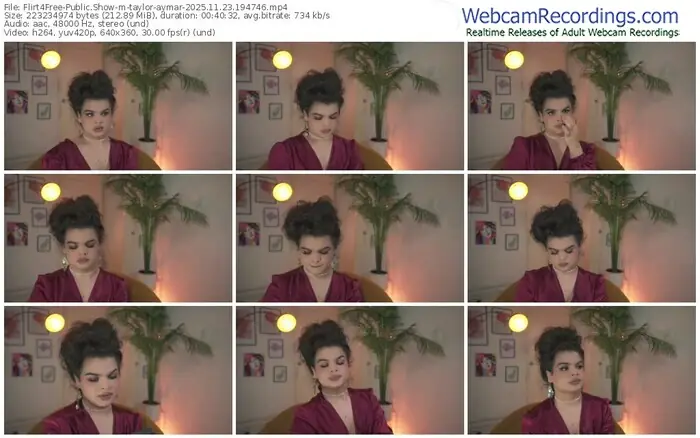 There are a total of 41 recordings (33 hours) of taylor-aymar from Flirt4Free available below.