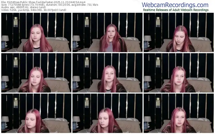 There are a total of 641 recordings (294 hours) of wilda-foster from Flirt4Free available below.