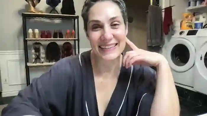 She is 57 years old, and the average age of models on Streamate is 30—making her one of the older models. Her height is 5'2, and her weight is 145 lbs. She identifies her ethnicity as white. She has a d cup size breasts, bald pubic hair on an average body with hazel eyes and salt and pepper hair.Her body art includes tattoos.