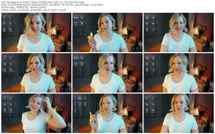 There are a total of 10 recordings (8 hours) of Nikki-Kai from Bongacams available below.