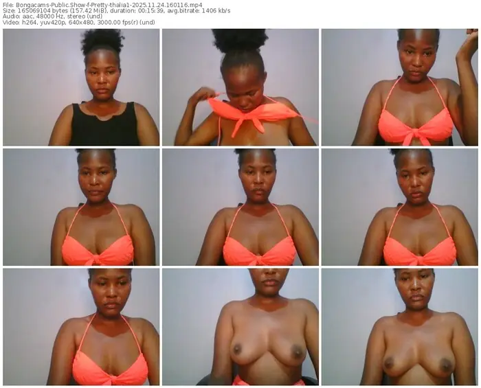 There are a total of 2 recordings (57 minutes) of Pretty-thalia1 from Bongacams available below.