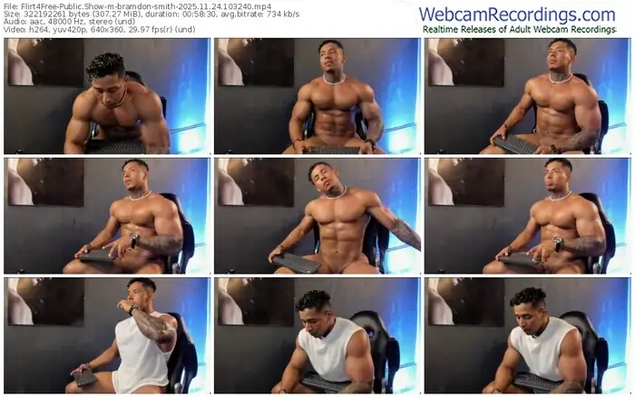 There are a total of 279 recordings (171 hours) of bramdon-smith from Flirt4Free available below.
